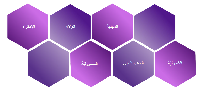 إنّ الثقة والولاء التي يضعها الأطراف المتداخلون في عمل مجموعتنا هي دليل على وجوب إجراء جميع الأنشطة التجارية وفقا لهذه المدونة واعتمادا على جميع السياسات والقوانين واللوائح المعمول بها. كما أن لدينا واجب تحسين خدماتنا باستمرار والسعي نحو التميز في كل ما نقوم به لبناء مستقبل أكثر استدامة. مسترشدين بقيمنا – وإدراك أن أفعالنا وسلوكياتنا لها من الأهمية الكثير. كما أن ثقافتنا تنبني على ستة مبادئ أخلاقية هي : الاحترام، الولاء، المهنيّة، المسؤولية، الوعي البيئي والشمولية.​